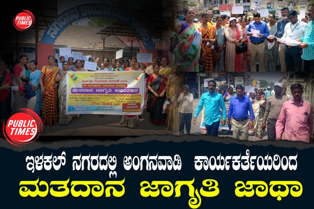 ಇಳಕಲ್ ತಾಲೂಕಾ ಆಡಳಿತ ಹಾಗೂ ನಗರಸಭೆ ಸಹಯೋಗದಲ್ಲಿ ತಾಲೂಕಿನ ಅಂಗನವಾಡಿ, ಆಶಾ , ಲಿಂಗತ್ವ ಅಲ್ಪ ಸಂಖ್ಯಾತರು ಮತ್ತು ಸ್ತ್ರಿ ಶಕ್ತಿ ಸಂಘದ ಸದಸ್ಯರು ಸೋಮವಾರದಂದು ನಗರದ ಪ್ರಮುಖ ಬೀದಿಗಳಲ್ಲಿ ಮತದಾನ ಜಾಗೃತಿ ಮೆರವಣಿಗೆಯನ್ನು ನಡೆಸಿದರು.